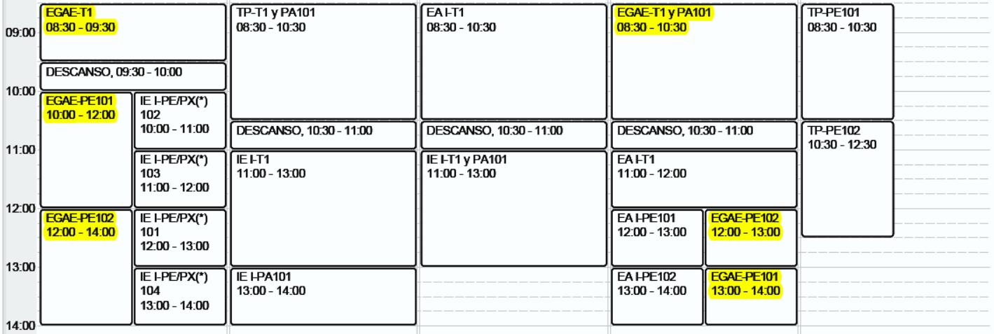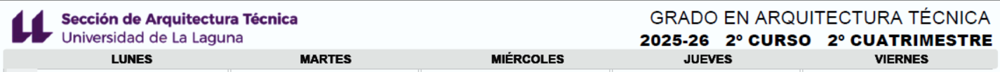 1er cuatrimestre: Martes de 11,00 a 14,00 h. (en Náutica) Jueves de 11,00 a 14,00 h. (en Arquitectura Tecnica) 2º cuatrimestre: Miercoles